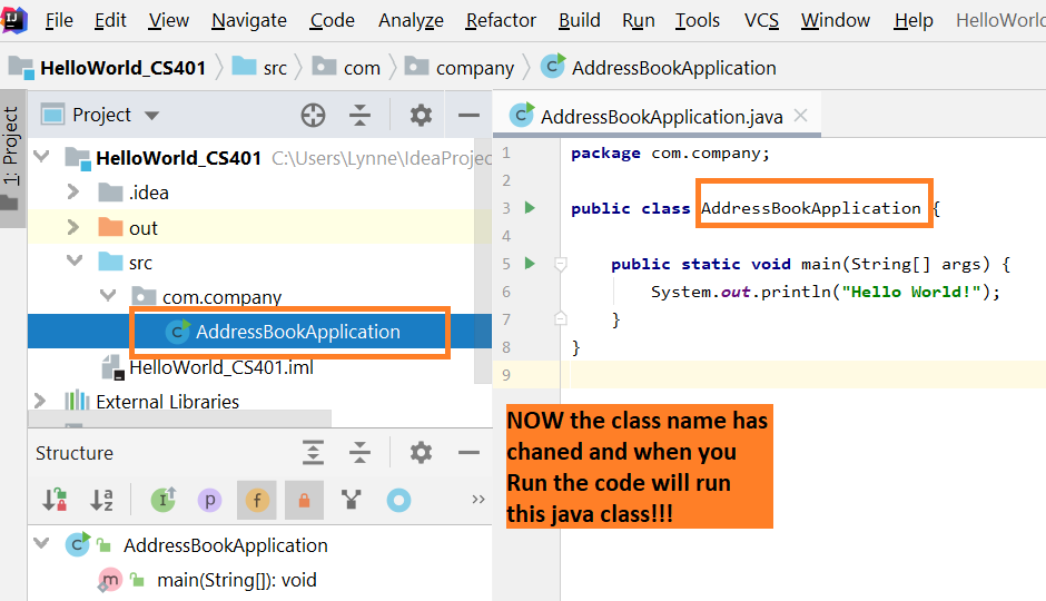 (For example, YOU can use the Main autogenerated class when you make a new Project if you call it AddressBookApplication)--see below how to do this