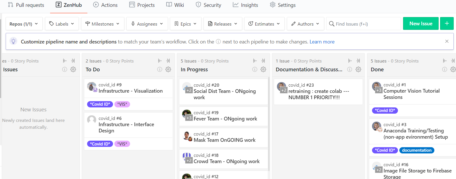 Schedule ("Kanban type" Board): make the Schedule using Board on ZenHub (plugin to your group GitHub repository)-take screenshot