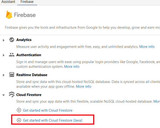 STEP 2.2 Select Get Started with Cloud Firestore(Java)