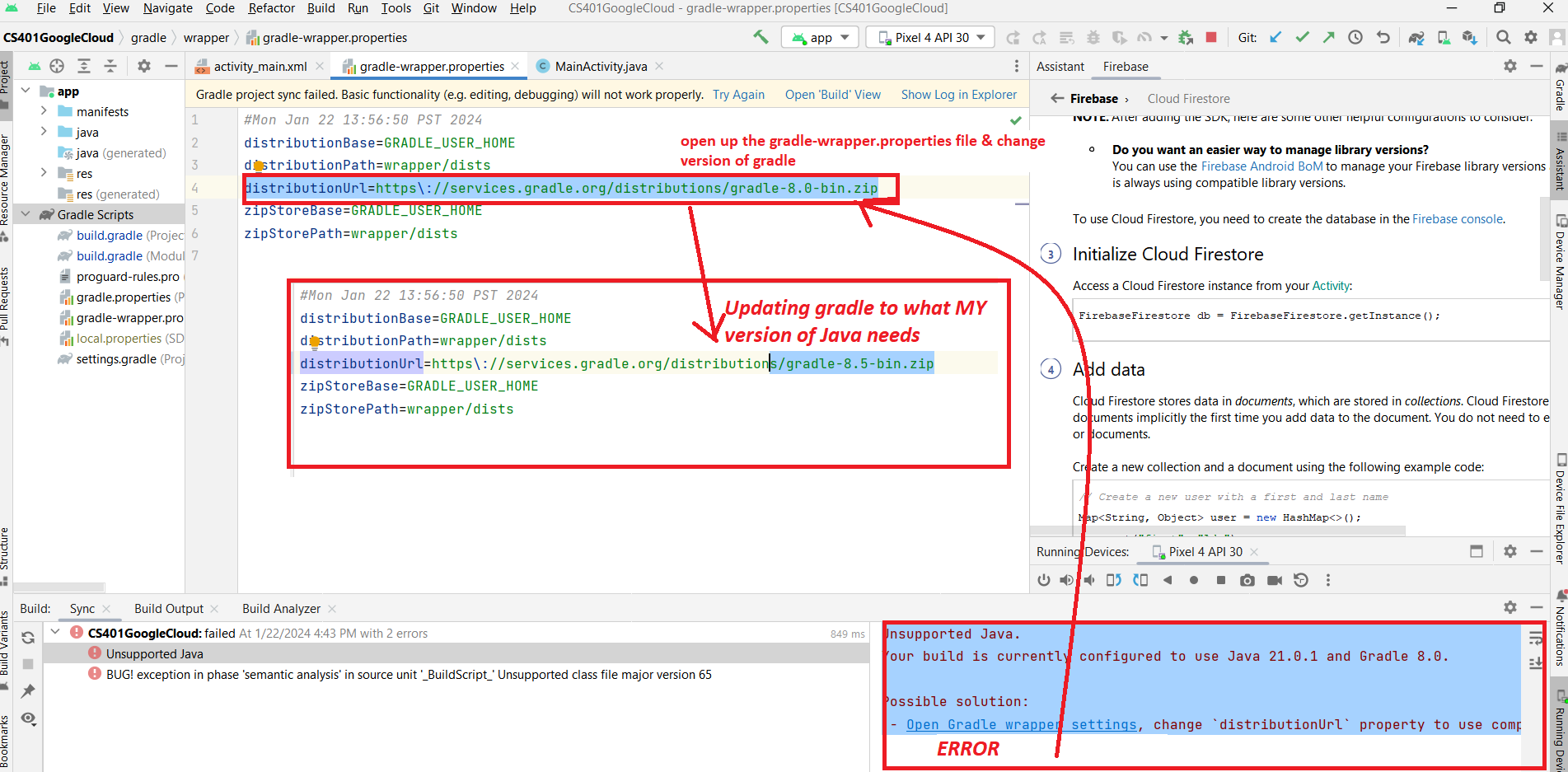 >>>> SPECIAL NOTE: If you get an error about the Java and gradle version compatibility issues after adding the above support