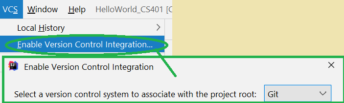 STEP 1: Open Prooject and Enable Version Control: VCS->Enable Version Control Integration AND then choose Git as the protocol......It will tell you that it created a git repository which in IntelliJ's case will be stored INSIDE of your project folder. This is the location of the LOCAL GIT REPOSITORY
