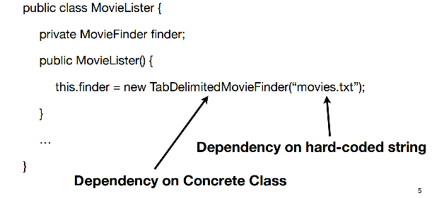 The format of the database cannot change without causing MovieLister to be changed to reference the name of the new concrete MovieFinder implementation