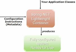 { a set of components (concrete classes + interfaces) } + {a set of configuration metadata} + Dependency Injection Framework --> small set of code that gets acces to the "Inversion of Control Container" that retrieves first object from that container representing the needed interface.