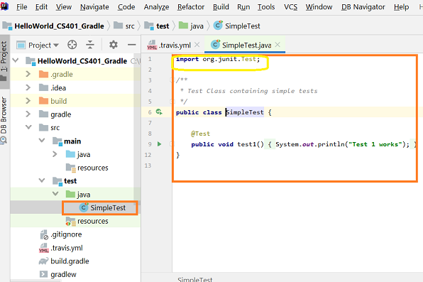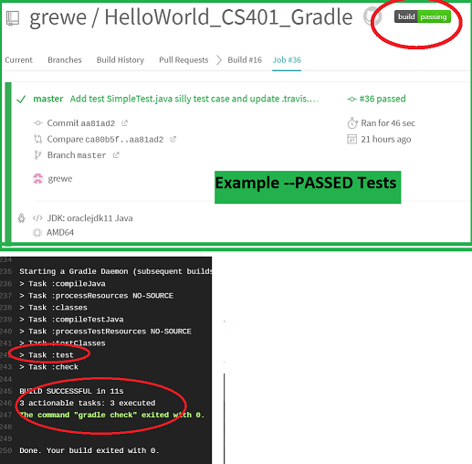 EXAMPLE 2 - calling gradle build and then check (the later calls the test classes)NOTE: this is essentially the same as Example 1 but, wanted to show you different version ....read Travis Ci documentation to learn about all options