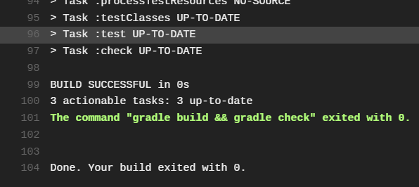 [0K[32;1mThe command "gradle build && gradle check && echo 'hello'" exited with 0.[0m