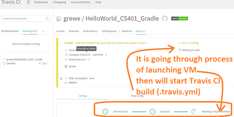 NEXT it will go through the items in the .travis.yml file and execute them.