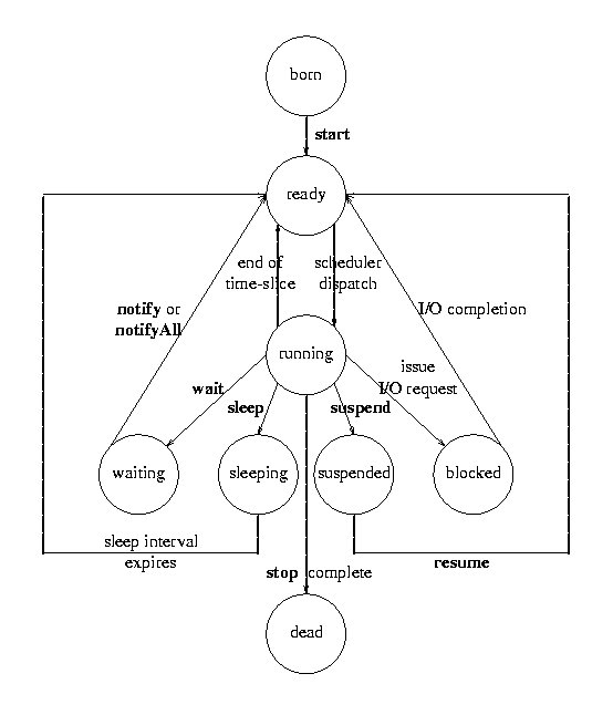 Java threads are units of a Java computation executing Java methods. Java Virtual Machines support concurrent execution of Java threads. Such multithreading is pre-emptive and prioritised. Scheduling is regulated by priorities: