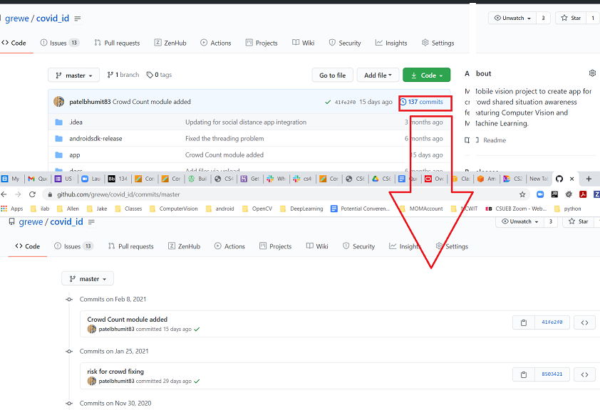While I understand I can go to your github.com and look directly at the commits myself I want to "FORCE YOU" to do this by requiring screenshots. This ensures me that you understand where to go on github to see this.