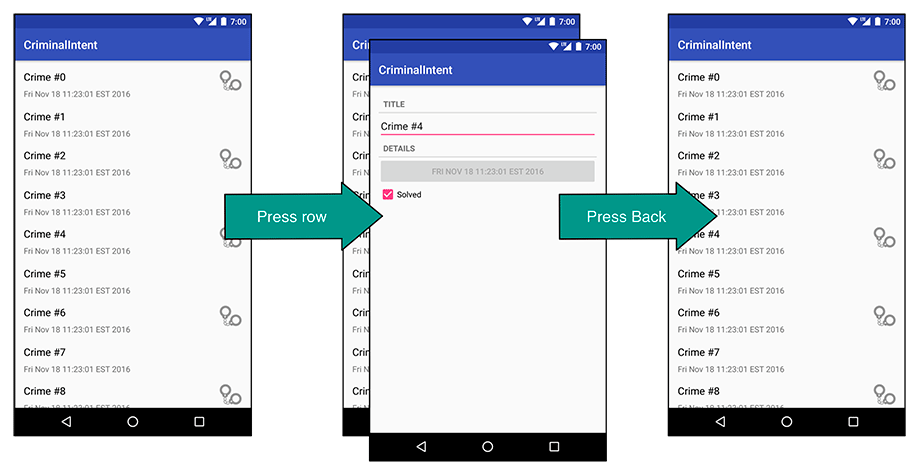 Exercise 7.1 CriminalIntent app of Chapters 8-10
