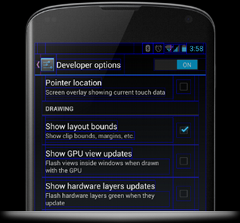 - Draw debugging information on screen such as layout bounds, updates on GPU views and hardware layers, and other information.