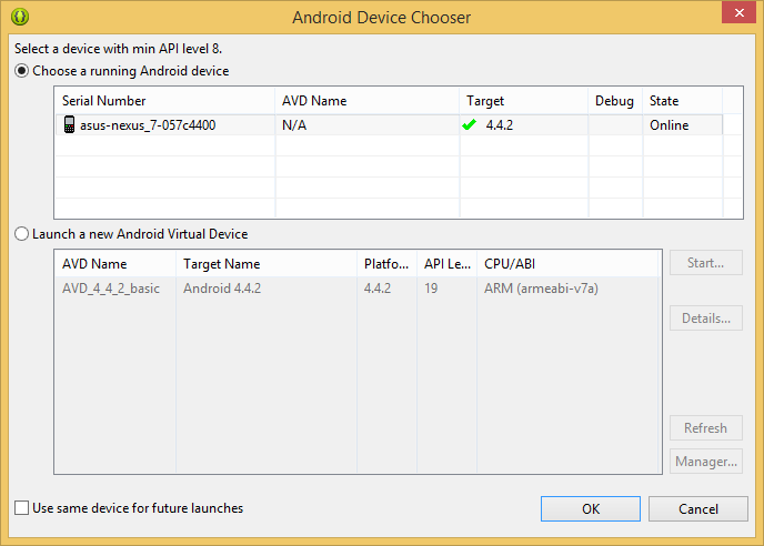 2) You will get prompt ...and select your device. See below where I have a nexus 7 tablet connected and setup