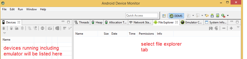 Now select the emulator OR device you wish to either push or pull files to/from