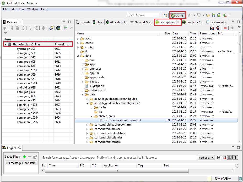 Here you see me navigating to the /data/data/application_package_name/shared_prefs/com.google.android.gcm.xml