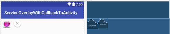 //Inflate the ouverlay_layout.xml file that contains and Image "J" logo for "journaling" // and an "x" image representing a close of a window overlayLayout = (LinearLayout) inflater.inflate(R.layout.overlay_layout, null); close=(ImageView)overlayLayout.findViewById(R.id.close); overlayButton=(ImageView) overlayLayout.findViewById(R.id.overlayButton);