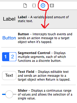 Drag and drop elements from the Object Libraries list of View elements to the interface you are building. Here we have dragged a Label and a button. In the Inspector Window I also set it up so the Label was centered.