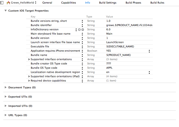 Apps that define custom document types must declare those types. Use the Document Types section of the Info tab to specify icons and UTI information for the document formats that you support. The system uses this information to identify apps capable of handling specific file types. For more information about adding document support to your app, see Document-Based App Programming Guide for iOS.