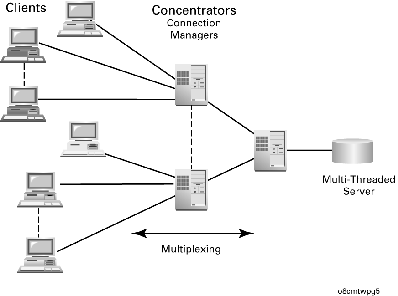 GOOD THING: One Oracle Connection Manager connection represents only one socket used, even if the Connection Manager is serving 100 clients. So, when multiple Oracle Connection Managers are employed, thereby connecting multiple clients, the total number of clients connecting to a single database grows exponentially. The benefits of using Oracle Connection Manager include support for large client populations and the ability to identify and monitor the actual users connected. Additionally Oracle Connection Manager is an ideal implementation for very many "heavy" or continuous client applications.
