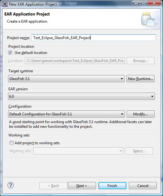 Creating EJB using Eclipse (with GlassFish pluggin) -- Creating a Enterprise Application Project