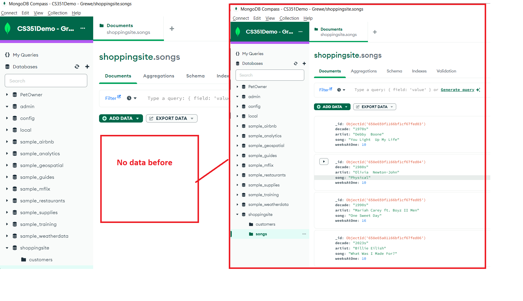 STEP 1.1: I have a database called shoppingsite with a collection call customers that I am going to access. Currently I have only 2 documents in it