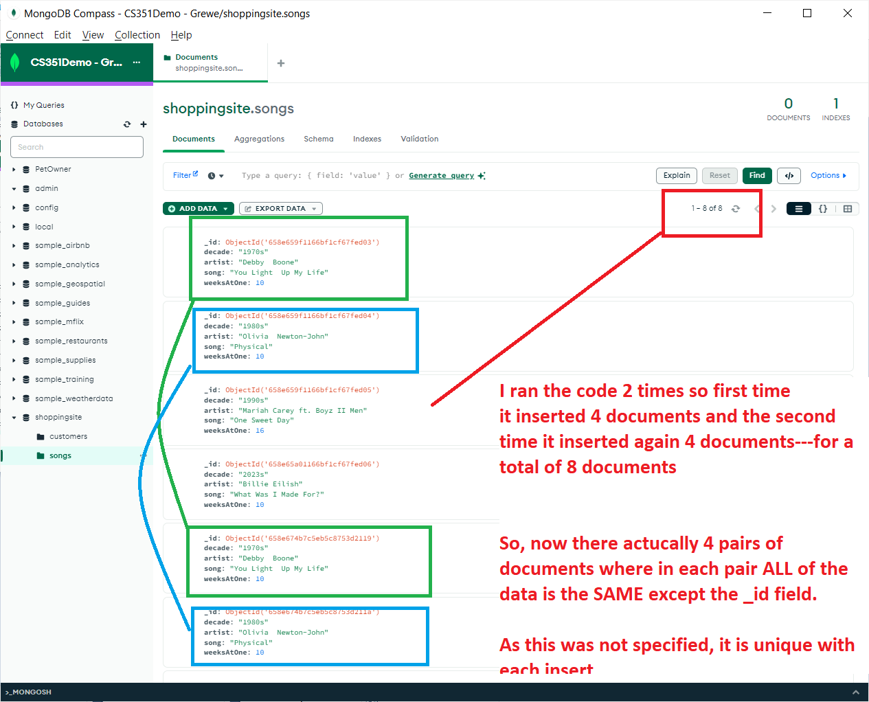 So, now there is actually 4 pairs of documents where in each pair ALL of the data is the SAME except the _id field.