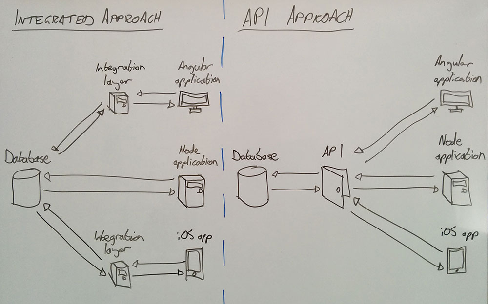 while more work creating an API initially, it means that you DONT DUPLICATE the work from your different interfaces like a web (Angular), different server application (e.g. NodeJS) or a mobile App (e.g. iOS).