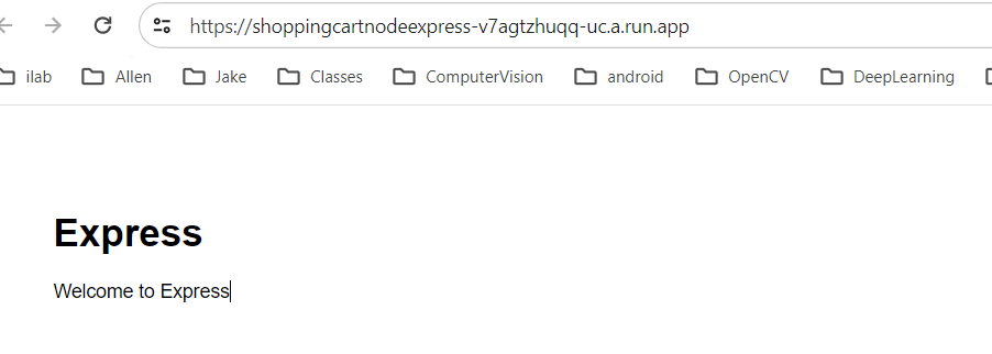 Follow the instructions again and answer the prompts (again see Deploy from Source Code to Google CloudRun.) --> at the end you will be given a URL that has your deployed app. Here it the results of me running the main / path to this url