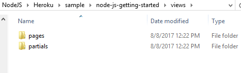 Suppose we make 2 sub-directorys called pages and partials in our views directory (where we keep our ejs files)