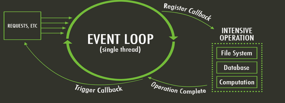 • Single Thread with Event Loop-->speed