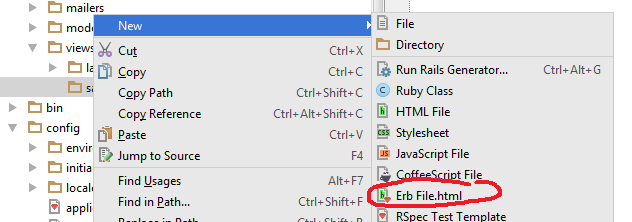 - Now create an HTML view file in app/views and make it an ERB file and call it hello.html.erb