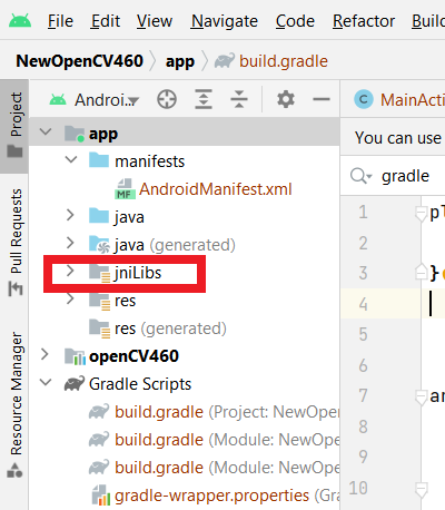 //Load in the OpenCV dependency module code from the jni files you linked in this project