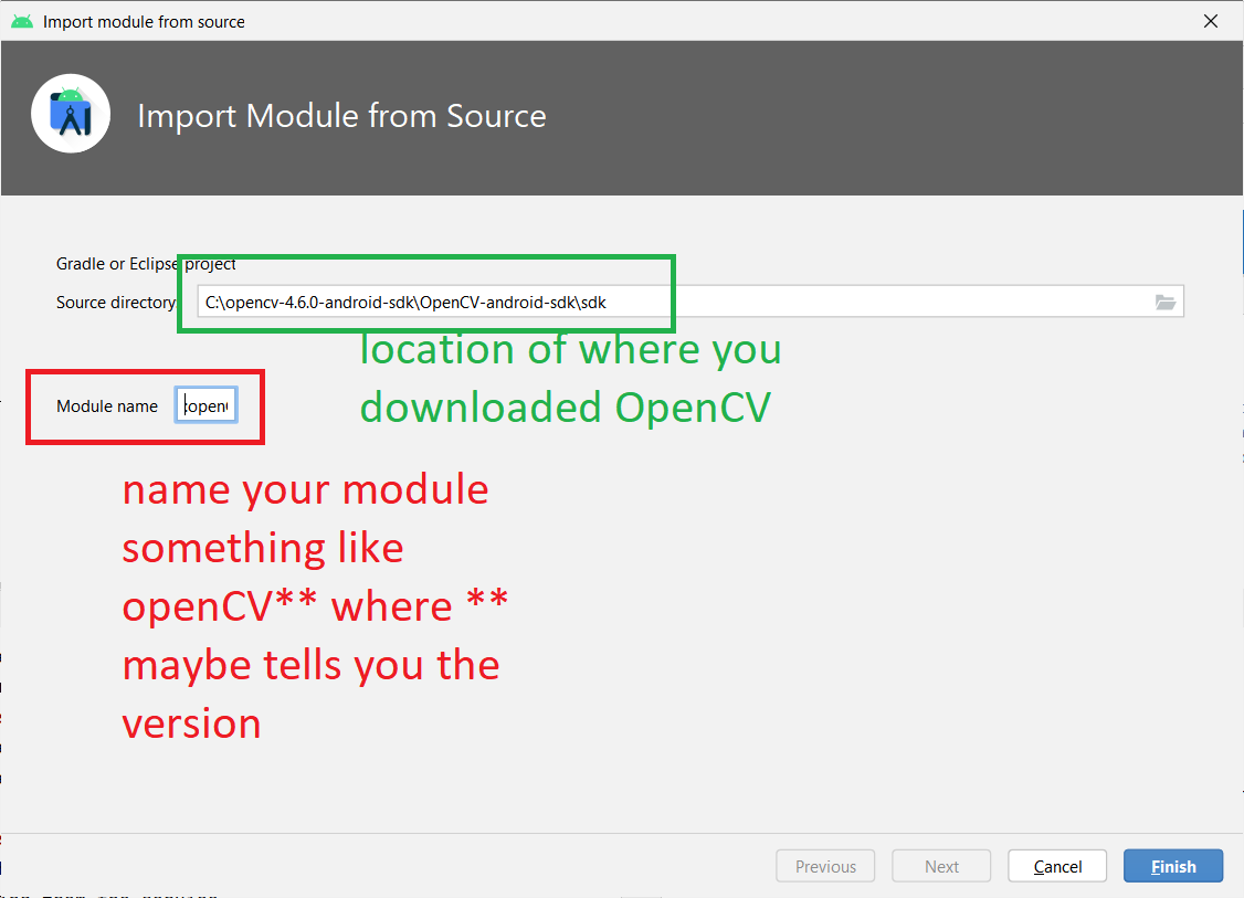 (going to add the module to represent the OpenCV code you downloaded in step 1)
