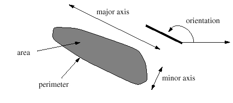 If you have thresholded an image with the goal in mind of extracting objects in the scene, useful for image analysis tasks, you can use a number of processing routines to further characterize the object information in the scene. Below is a series of features that can be detected for each object region in the image, which we will call B[i][j].Size