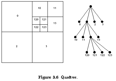- Every node of the tree except the leaves has four children (NW: north-western, NE: north-eastern, SW: south-western, SE: south-eastern).