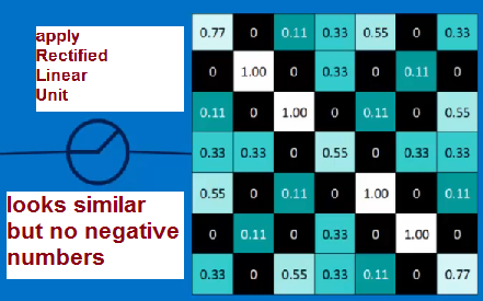 WAIT we not done --- we must introduce a non-linearity and do so for CNN at each data sample by applying Rectified Linear Units: set values < 0 to 0