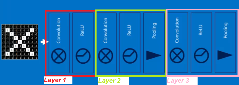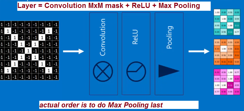 LAYER = Convolution with set of (1-*) MxM filters + nonlinear + max pooling (downsample)