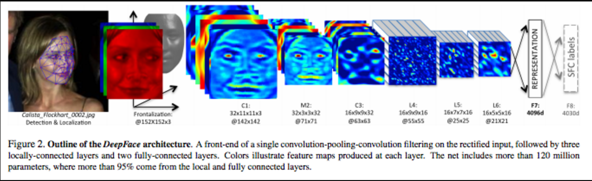 A different example --detection of faces with input RGB. Different filters (and number) at each layer are applied
