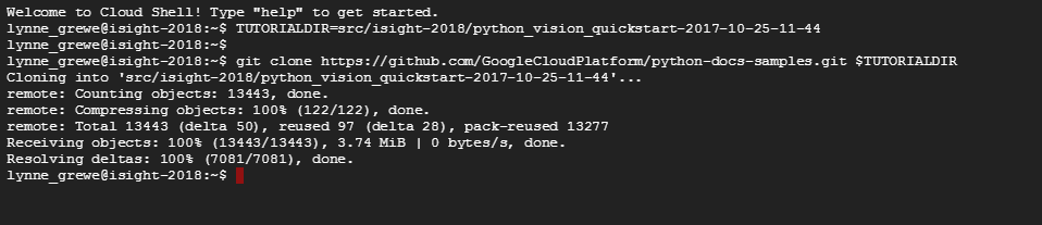 git clone https://github.com/GoogleCloudPlatform/python-docs-samples.git $TUTORIALDIR