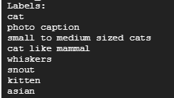 cd $TUTORIALDIR/vision/cloud-client/quickstartPython code that reads in a image file stored in resources/wakeupcat.jpg and calls the Google Vision label detection on it.