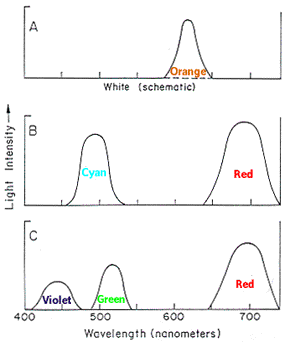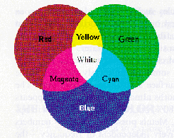 - The light from a monitor or projector. The primary hues are green, red, and blue. "Combining" any two opposite colors = white.