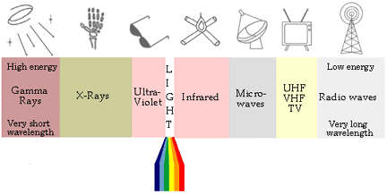 Ultraviolet <---- Visible Spectrum (350-780 nanoseconds) ----> InfraRed