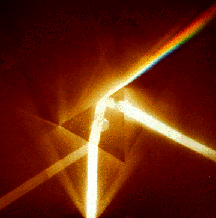 Here we can see the white light splitting into the spectrum using a prisim. |