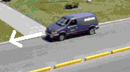 This is a diagram containing motion vectors that indicate the direction and speed of the moving portions of image. Below is an image with the a set of superimposed vectors on top of it. Note that the Car is moving down the road to the left.