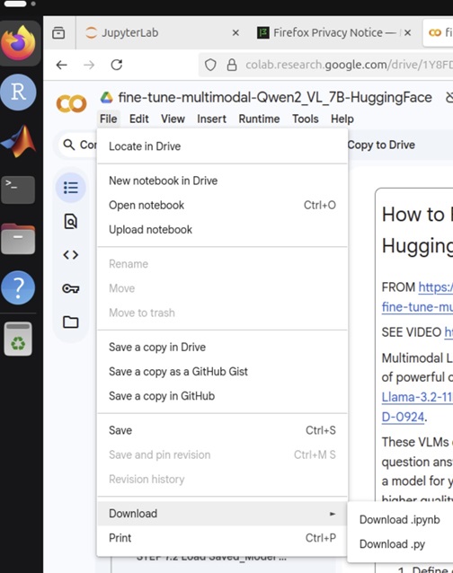 4) Go to Firefox brower and get the code (colab for example) you want and download it to instance's downloads
