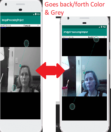 Random selected = Output sometimes grey sometimes color (note is emulator running with emulated camera)