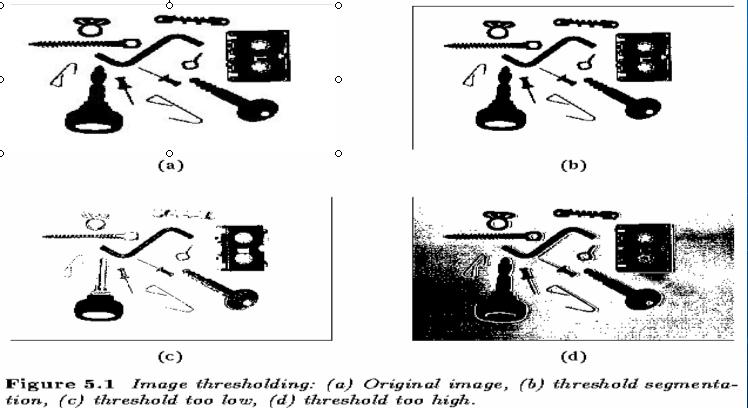 - (also adaptive thresholding), in which the threshold value varies over the image as a function of local image characteristics, can produce the solution in these cases.