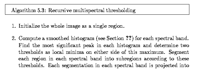 - One segmentation approach determines thresholds independently in each spectral band and combines them into a single segmented image.