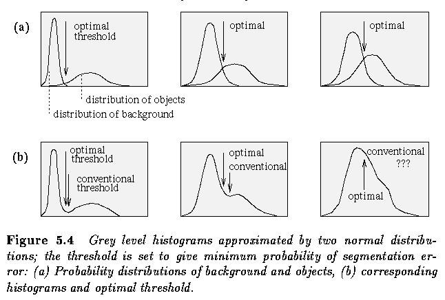 - based on approximation of the histogram of an image using a weighted sum of two or more probability densities with normal distribution