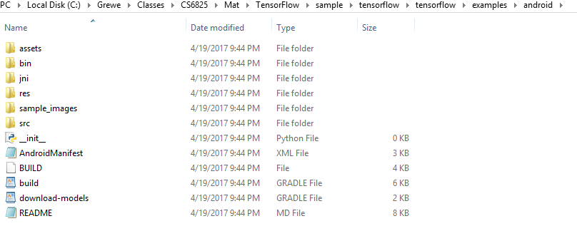 java (org.tensorflow.demo) / Classifier.java which is a "helper" class that represents a TensorFlow Classifier --will load a pretrianed model /* Copyright 2015 The TensorFlow Authors. All Rights Reserved.