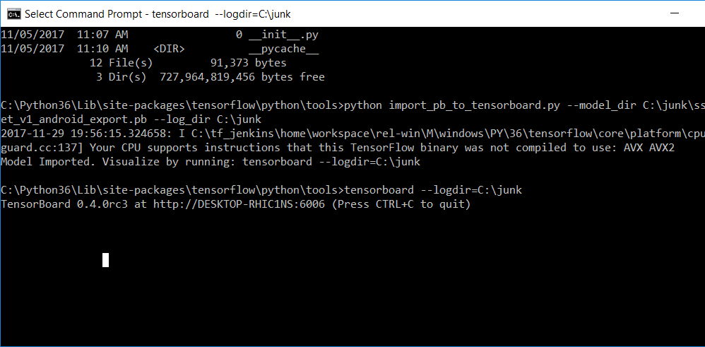 STEP 2: now that model imported for use with tensorboard tool run it by typing: