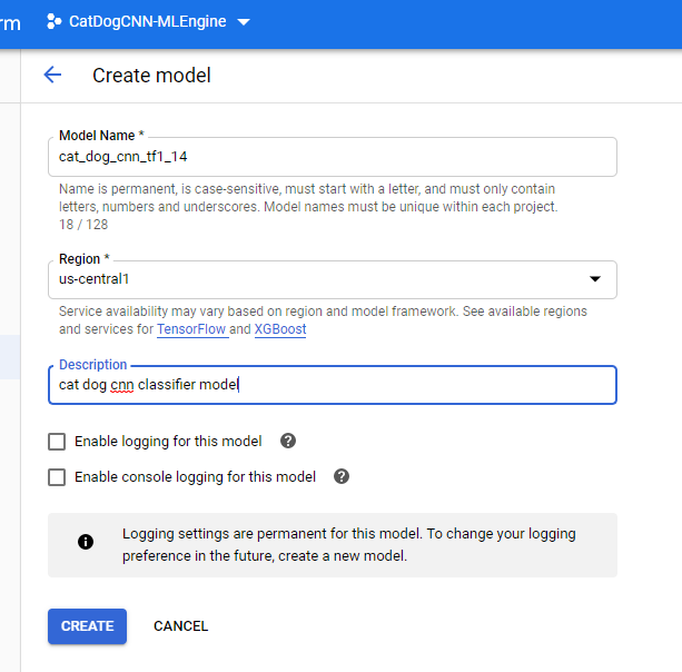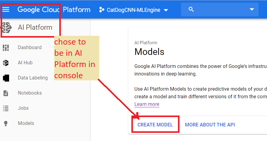 STEP 4: in your created project go back to AI Platform and choose create new model--you may choose
